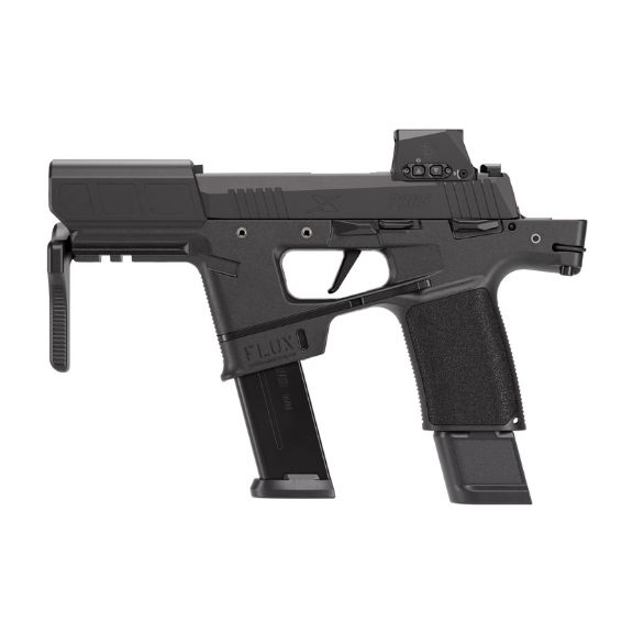 The P365 FLUX meshes a 9mm handgun with a PCC style platform, bringing the speed, maneuverability, and concealability of a pistol, combined with the stability of a carbine. The P365-FLUX delivers a host of innovative features and enhancements, including a spring deployable brace for rapid utilization, muzzle shroud, front picatinny mount for a variety of accessories, XRAY3 Day/Night sights, ambidextrous controls, and up to a 46-round capacity.